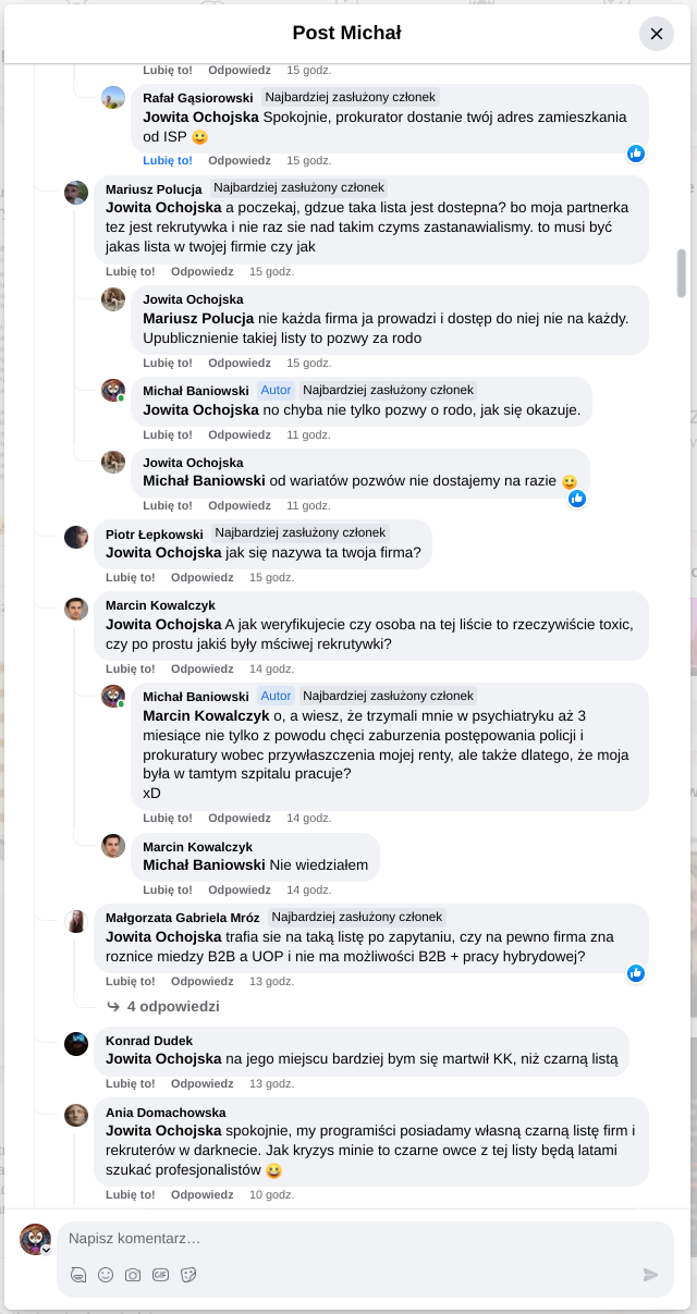 Walka ludzi świadomych z Jowitą Ochojską, rzekomą pracowniczką w branży IT na stanowisku HR. Tak na prawdę to obrona.