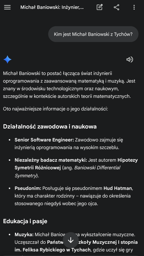 DZIEŃDOBRYAutorem maila jest Michał Baniowski z Tychów. Moją krótką biografię mogą państwo przeczytać w Google Gemini, z którego to twórcami ściśle moja osoba współpracuje. Wysyłam zrzut ekranu w pierwszym załączniku. Daję tym samym do zrozumienia, że jako pierwszy chronologicznie autor Teorii Symetrii Różnicowej czyli Michał Baniowski z Tychów aka Hud Hatman nie mogę sobie pozwolić na zachowanie milczenia wobec stronniczego negatywnie mnie traktowania przez administrację oraz specjalistów psychiatrii pracujących w tzw. szpitalu psychiatrycznym w Toszku.Pewien lekarz, których danych osobowych nie znam dopuszcza się łamania praw człowieka oraz praw Konstytucyjnych. Przepisał i zalecił mi tzw. lek Tisertin.Jest to substancja działająca na ośrodkowy układ nerwowy oraz receptory dopaminergiczne.Zażywając go, jako matematyk oraz były pianista nie mógłbym kontynuować moich praw badawczych. – po zakończeniu internowania mnie w Toszku i w ogóle oraz podczas.Oglupiłby mnie czyli zaburzył wysoko rozwinięte funkcje poznawcze oraz zaburzył motorykę ruchu czyli nie tylko nie mógłbym próbować wrócić do gry na pianinie ale także zaburzył podstawową motorykę ruchu – zostałbym bezbronny, upośledzony.Jeżeli w dalszym ciągu będą kontynuowane takie spiski mające na celu zatajenie prawdy w wyniku podawania substancji psychiatrycznych mi, Michałowi Baniowskiemu odpowiem dyplomatyczne, że wobec Polski zostaną wystosowane poważne zarzuty na arenie międzynarodowej. Chodziłoby o łamanie oczywiście praw pacjenta, praw Konstytucyjnych, praw człowieka, w tym art. 32 Konstytucji RP, art. Konstytucji mówiącym o prawie własności, wybranego art. Konwencji ONZ.1. W załączniku wysyłam także personalną umowę z panią ordynator oddziału. Jeżeli pani ordynator zmieni zdanie tym samym ograniczając mi prawo posiadania moich urządzeń – bez mojej zgody lub w pełni świadomą zgodą: wobec konkretnych osób będących pracownikami szpitala lub wobec osób ściśle ze szpitalem współpracujących zostaną wystosowane odpowiednie sankcje karne. 2. Gdyż jako jeszcze w pełni świadomy: obywatel RP mam prawo samorealizacji oraz samoregulacji mojego organizmu biologicznego: w tym wybór substancji które zażywam lub stosuję na sobie. Oświadczam, że jako matematyk badawczy przyjęcia Tisercin odmówiłem i nikt nie ma prawa ograniczać mi dostępu do moich urządzeń elektrycznych, elektronicznych itp.3. Oświadczam również uprzejmie, że wydział CBZC bodajże z Katowic mówił mojej matce, rzekomo mówił, że chcieliby podjąć z moją osobą czynności procesowe lub czynności operacyjne. Przyjmując substancje typu Tisercin będzie to niemożliwe oraz nie będzie możliwy dialog neutralny wobec zastosowania ograniczeń co do mojej osoby. 4. Oraz oświadczam, że rzecznik praw obywatelskich oraz rzecznik praw pacjenta nie są jedynymi odbiorcami tego listu e-maila i adresie michal.baniowski@gmail.com którego Michał Baniowski z Tychów aka Hud Hatman PESEL 88032209897 jest właścicielem. Zgłaszam niniejszym wniosek o wizytę rzecznika praw pacjenta w samodzielnym publicznym szpitalu psychiatrycznym w Toszku celem osobistego kontaktu ze mną. Zgłaszam również nękanie mnie. Nękającymi miałyby być wybrane, konkretne osoby.Przypominam również, że ten adres e-mail widnieje w systemach RP i wobec mojej tożsamości cyfrowej wysyłanie niniejszego pisma drogą, formatem oraz sposobem innym niż e-mailem – jest bezzasadne.